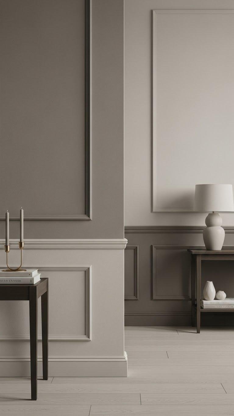 When you introduce chalky taupes and greiges, aim for a graduated palette that reads intentional rather than flat: pick two to three related tones—one dominant, one for trim and moulding, and a darker accent—and apply them in varying sheens to define planes and depth.
