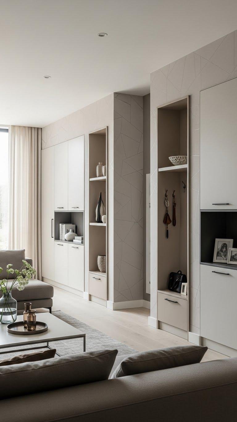 Subtle patterning gives a room visual texture; built-in storage keeps that texture from competing with clutter. You’ll favor hidden cabinetry and recessed shelving to preserve clean lines while maximizing function.