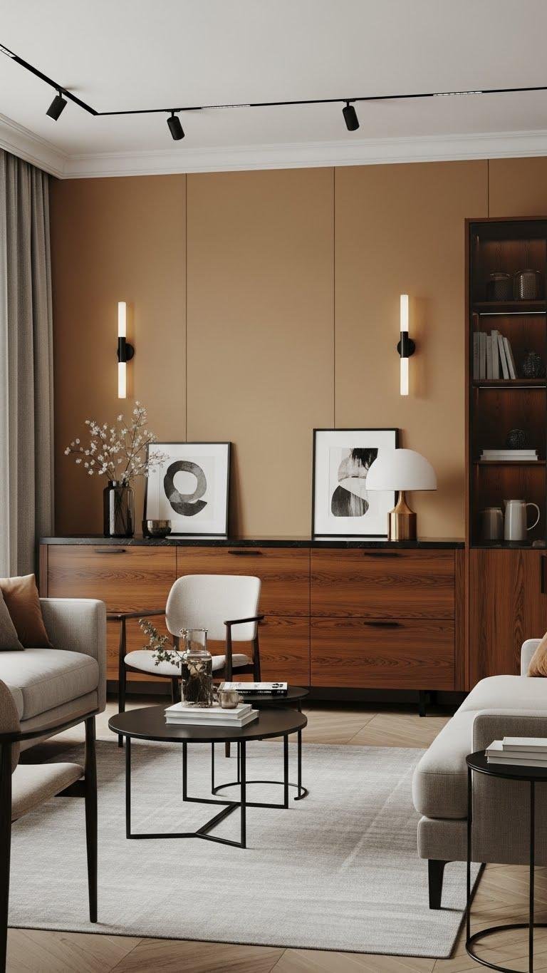 When you introduce a caramel or cognac feature wall, you anchor the room with a warm, sophisticated tone that elevates neutral palettes without overpowering them.
