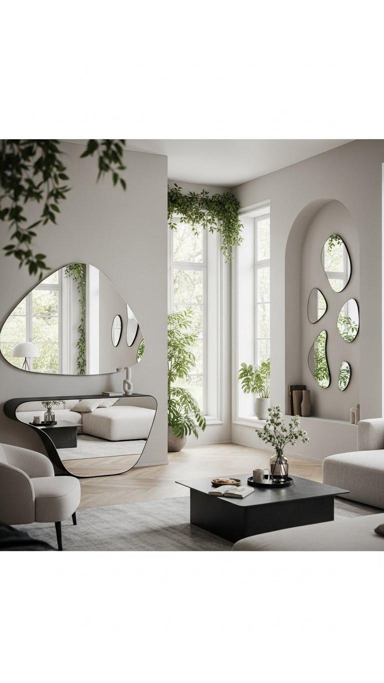 Mirrors with soft, curved edges instantly open up a living room, bouncing natural light into corners and visually widening tight layouts so your space feels airy and inviting.