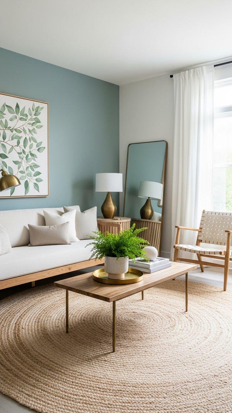 If you want to introduce a calm, modern backdrop without overwhelming the room, paint a single wall in muted sage or dusty blue to anchor the space and highlight your furnishings.