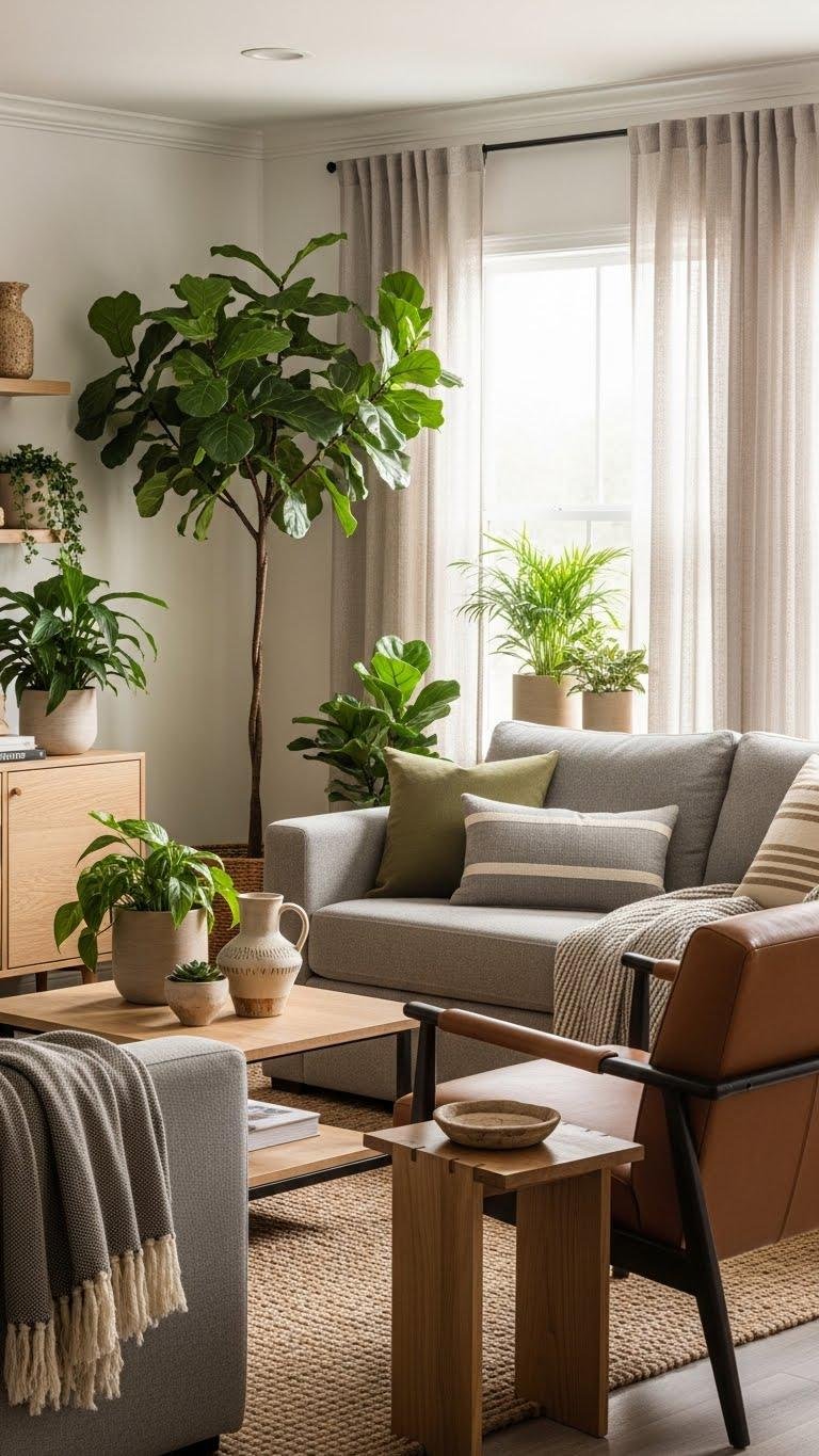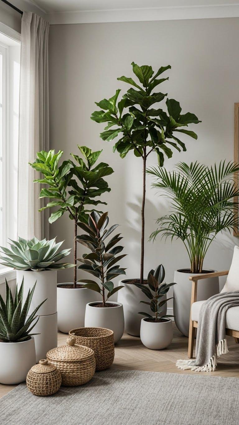 You’ll mix texture and calm with oversized succulents, woven baskets, and a statement fiddleleaf to craft open, breathing spaces that feel effortless and liberating.