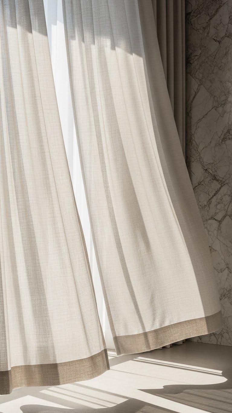 After placing a single stone or marble accent, soften the room’s light with gauzy sheers to keep that quiet, airy feeling. You’ll let soft sunlight wash surfaces while preserving privacy and movement.