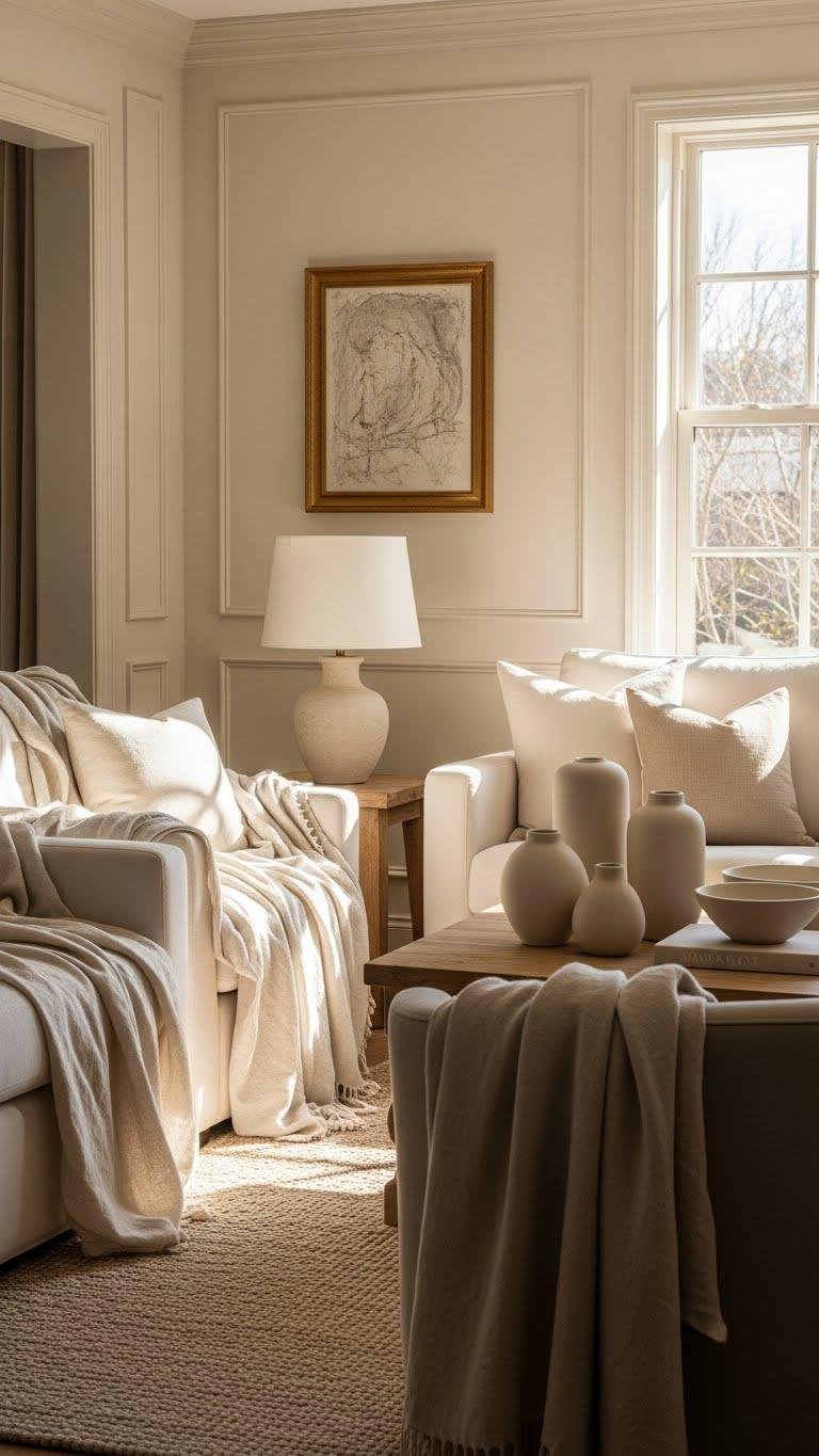 Start with a warm neutral palette—think honeyed beiges, soft taupes, and muted terracotta—to ground your space and instantly add cozy, layered depth.