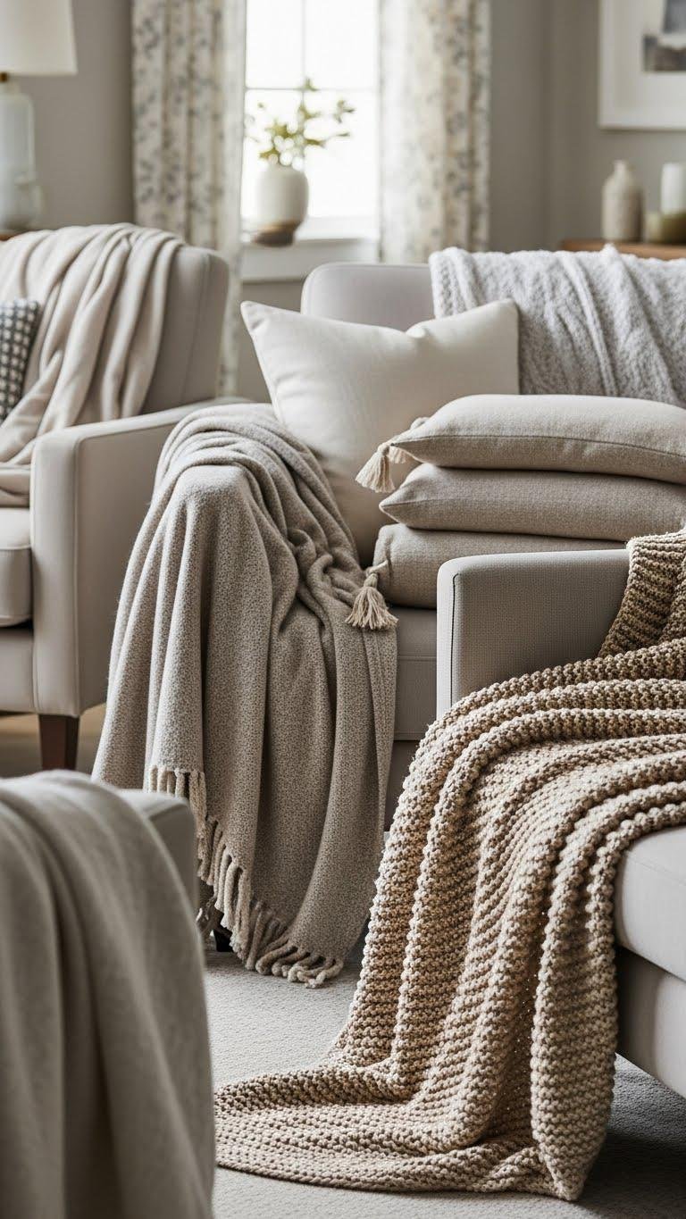 Arrange Cozy Throw Layers in Complementary Neutrals