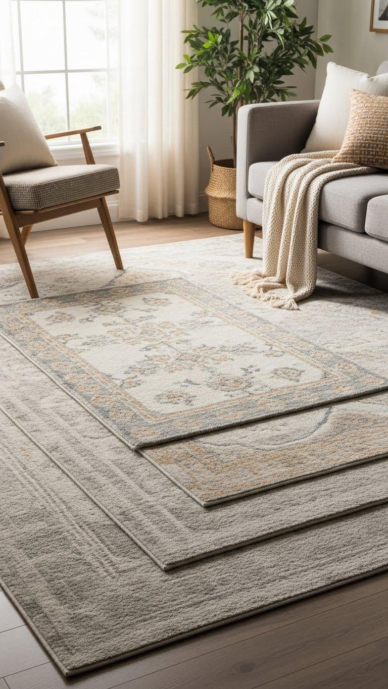 When you layer rugs in subtle patterns and neutral tones, you’ll add depth and warmth without overwhelming the room; start with a large, low‑pile base in a soft neutral and top it with a smaller, textured rug or runner that introduces a gentle pattern or slightly warmer hue.