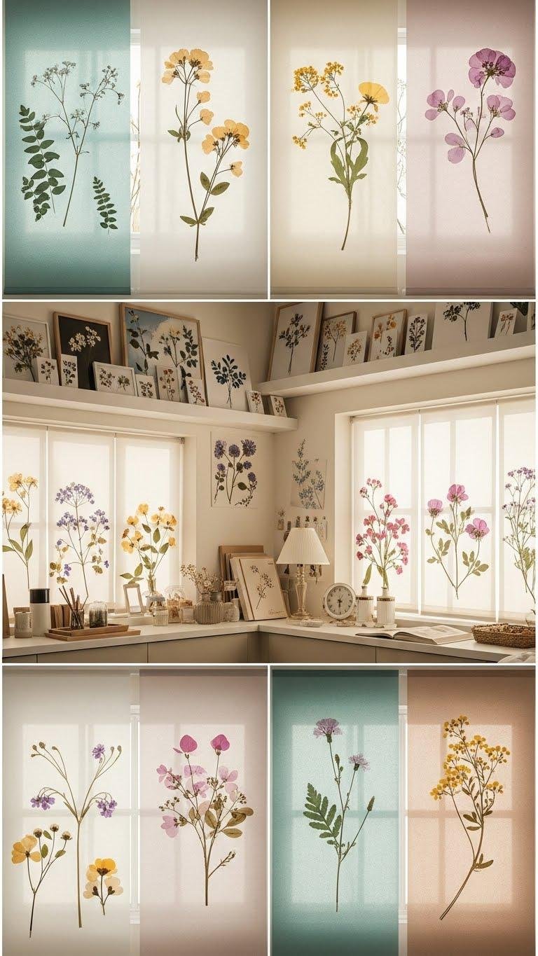 If your shelves are whispering spring with pressed blooms, carry that gentle light into the rest of the room by adding light-filtering window films or panels. You’ll soften glare and enjoy subtle light diffusion while keeping views open.