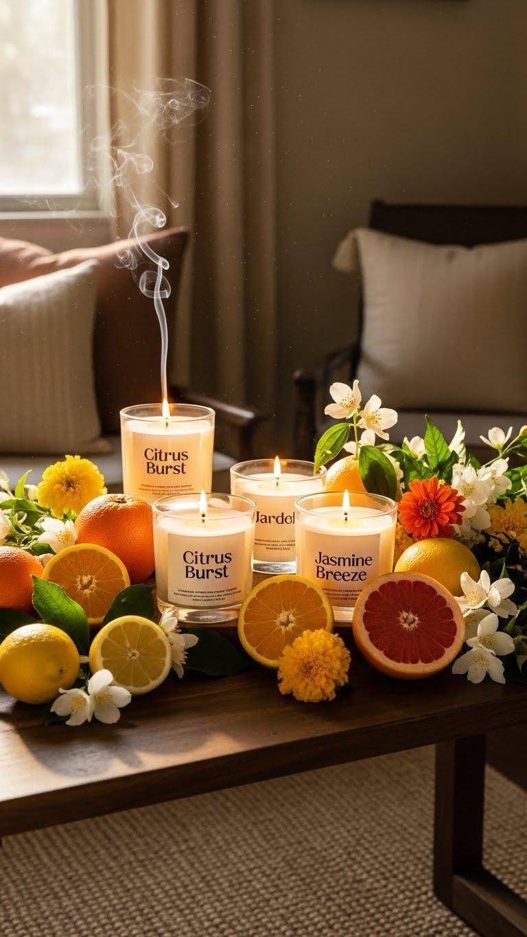 Choose candles with bright citrus top notes and a soft heart of delicate jasmine to lift mood and invite ease. Place them where light catches glass, then breathe deep and let your space feel open, calm, and unfettered.