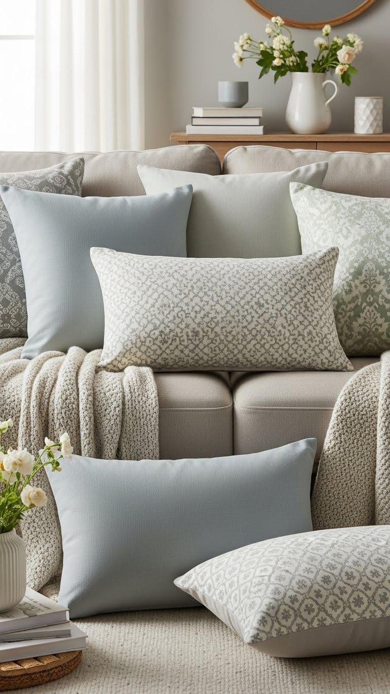 Choose pillows with pastel textures and muted patterns to create quiet layers that invite lounging. Mix linen, brushed cotton, and subtle jacquard for tactile interest. You’ll feel liberated swapping covers each season, keeping your space fresh and gently expressive.