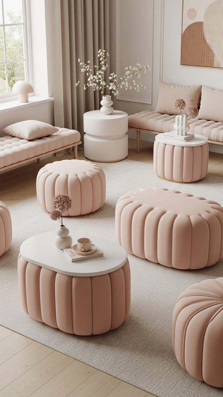 You’ll welcome rounded edge poufs and scalloped ottomans to create gentle movement and a lighter mood. Arrange pieces with breathing space, let shapes lead, and enjoy a freer, calmer room that nudges you to stay awhile.