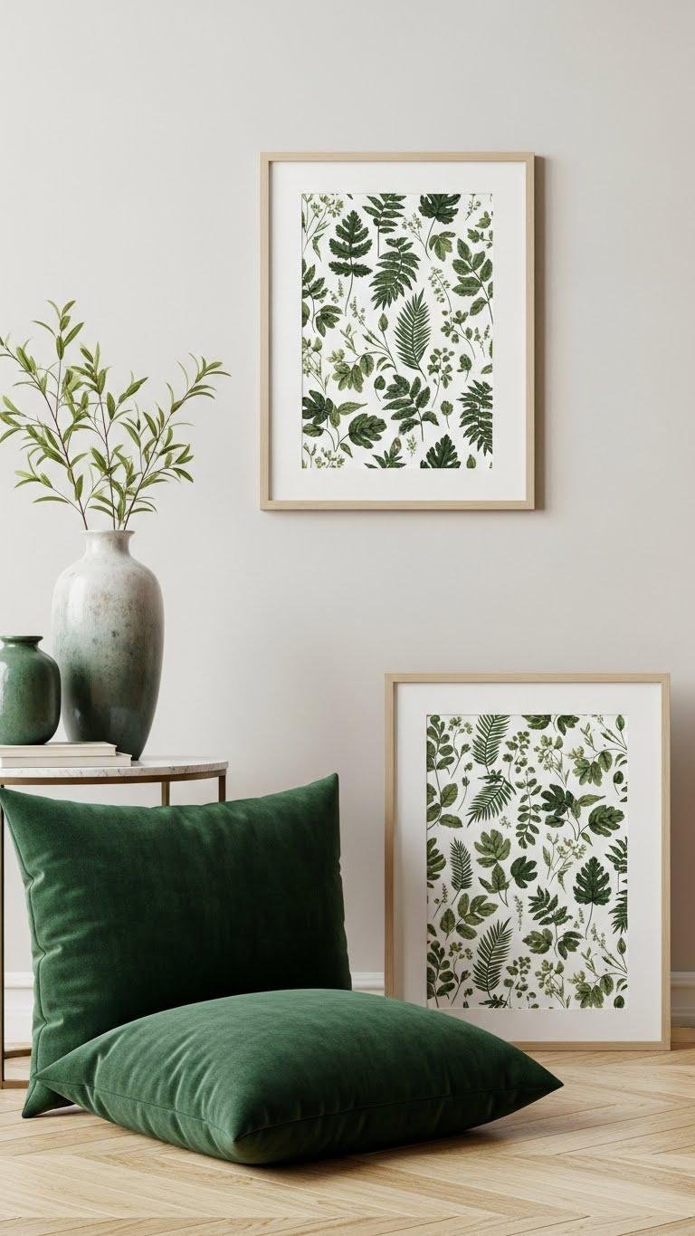 Introduce a single deep botanical accent color to anchor the room and bring spring’s richness without cluttering your palette. Choose deep emerald in small doses—a velvet cushion, a ceramic vase, or a framed botanical wallpaper swatch—to ground airy neutrals.