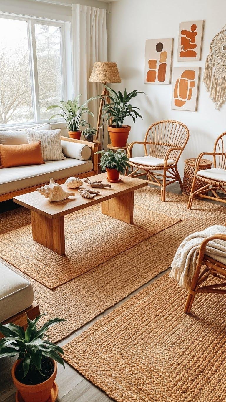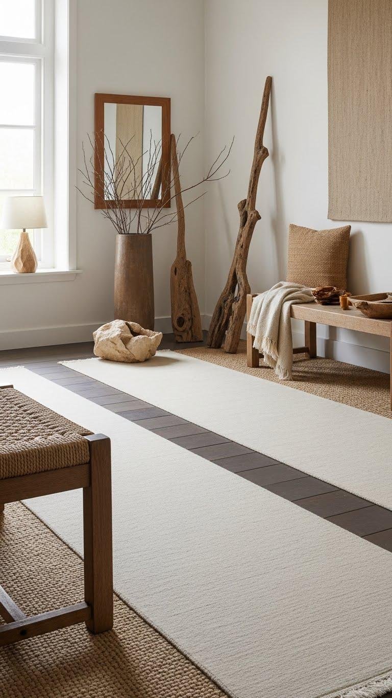 Bring in a jute rug to anchor a room with instant, organic warmth—its braided texture and warm honey tones add depth without shouting for attention. You’ll love how coastal fibers feel underfoot, grounding minimalist or boho spaces.