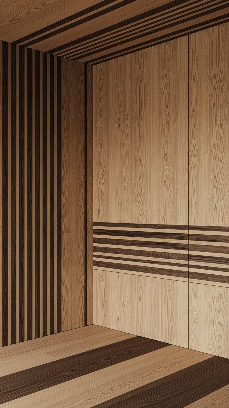 Introduce slatted wood accents to add linear rhythm and warm tactility to your interiors—vertical or horizontal slats create clean shadow play, control sightlines, and define zones without closing them off.