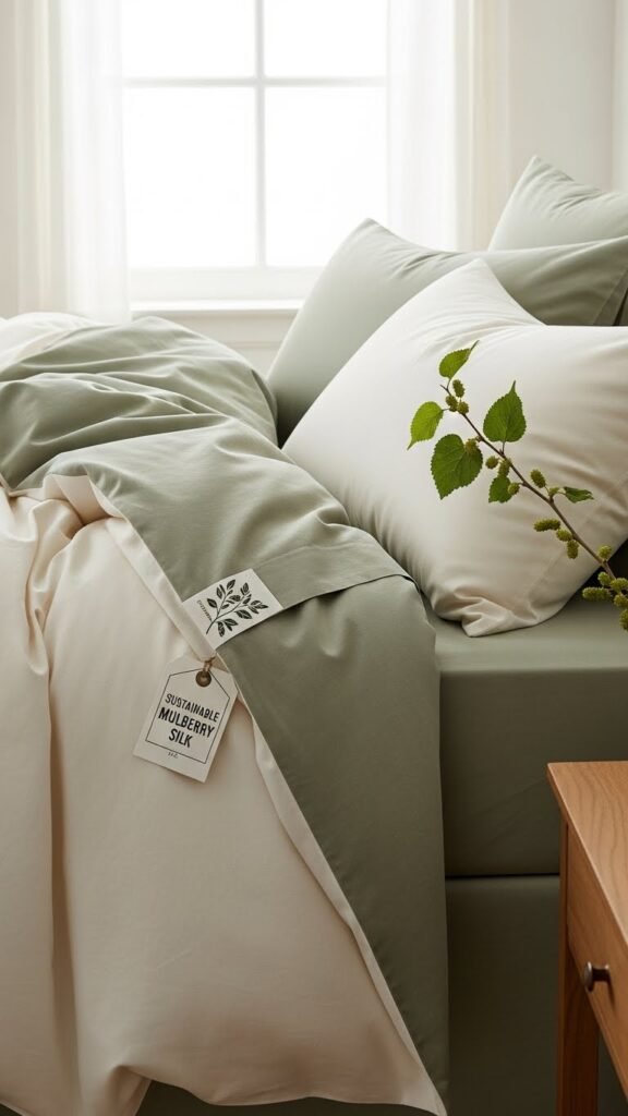 You’ll sink into breathable organic silk that warms without weighing you down, its smoothness whispering against skin.