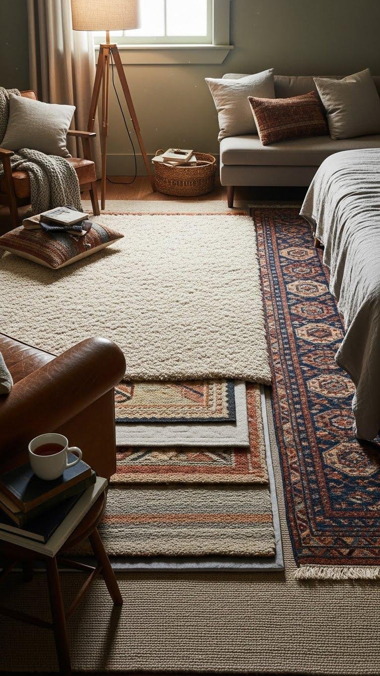 Layering rugs lets you dial up warmth, texture, and personality while insulating cold floors underfoot. You’ll mix plush piles with flatweaves, anchor a bed with a bold patterned runner, and secure layers using insulated rugpads so they don’t slip.