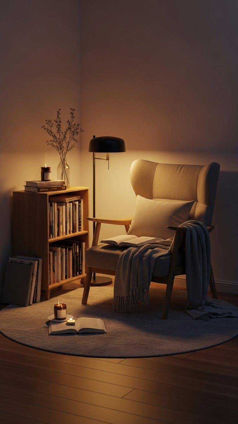 Tuck a comfy chair into a quiet corner and you’ve instantly carved out a private retreat for slow afternoons—soft ambient light will make it feel like a gentle invitation.